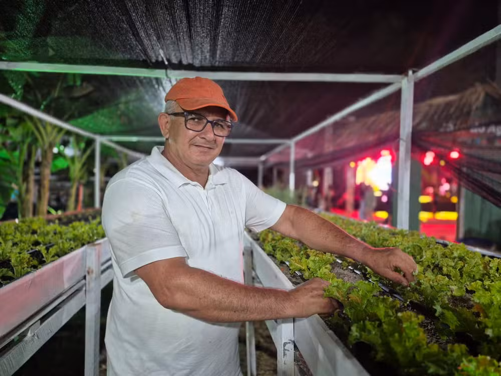“Aqui a gente precisa controlar sol e chuva. A forma hidropônica é muito vantajosa porque permite esse controle”, explicou o coordenador Samuel.