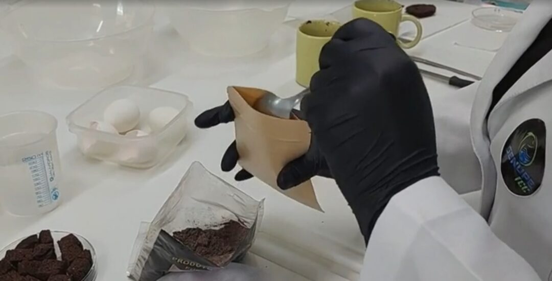 “A partir dele a gente faz as misturas com os adicionais. A gente fez vários testes até chegar a esse ponto que nós temos agora, a mistura para o bolinho instantâneo à base de farinha de peixe que é a nossa proteína principal”.