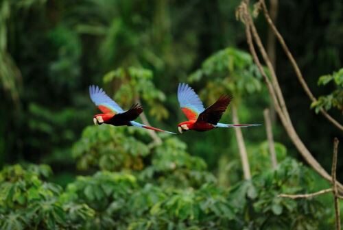 - Arara: Com sua plumagem vibrante e vocalizações altas, as araras são uma das aves mais emblemáticas de Tambopata. A reserva abriga a maior concentração de araras do mundo.