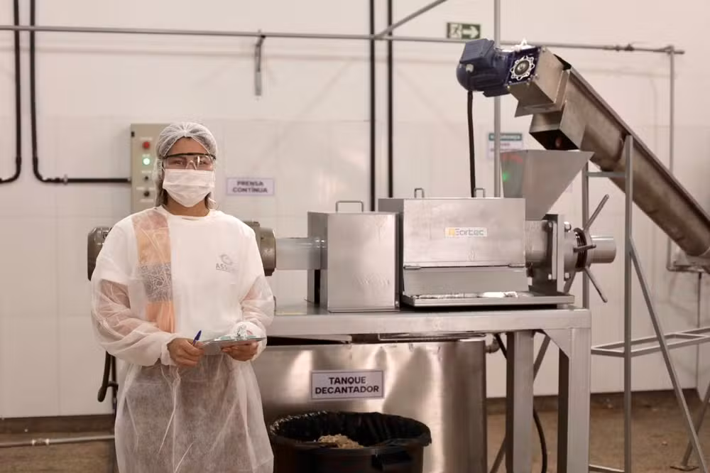 A agroindústria da Assoab adota soluções de circularidade e eficiência energética. Resíduos da casca da castanha são utilizados para alimentar a caldeira, enquanto sistemas de captação de água da chuva integram as operações. A associação também acessou recursos para a implantação de energia fotovoltaica, atualmente em fase de implementação.