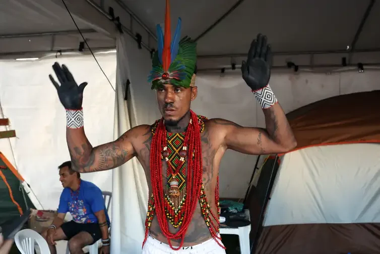 Com um cocar ancestral na cabeça, feito com penas de maritaca e de arara, o artesão Tapurumã Pataxó, de 32 anos, aproveitou o Acampamento Terra Livre, em Brasília (DF), para alertar que o cenário dos territórios indígenas tem sido de menos aves no céu. Com menos pássaros, a produção artesanal de cocares é impactada.