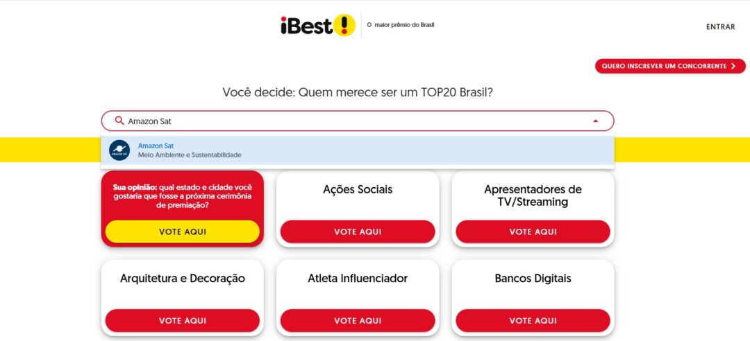 Ainda na primeira fase, designada como ‘Seleção iBest’, as iniciativas competem para se tornar finalistas do prêmio. A votação acontece de 23 de abril até 13 de junho. O Amazon Sat concorre para seguir ao TOP 20.