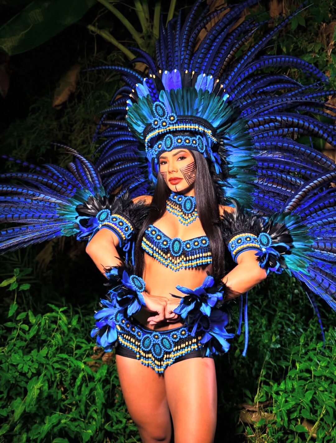 Lívia Christina tem 26 anos, é de Parintins, mas mora em Manaus (AM). É a atual Rainha do Folclore do Boi-bumbá Garantido, do Festival Folclórico de Parintins, a mesma agremiação da ex-bbb Isabelle Nogueira. A dançarina é amiga da Cunhã-poranga do vermelho e atuam juntas no Festival.
