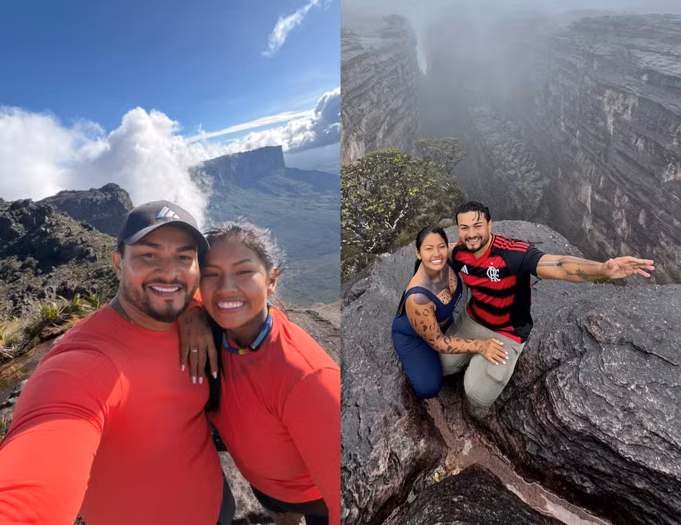 Enquanto alguns casais optam por cerimonialistas e decorações para uma cerimônia tradicional de casamento, a influenciadora digital Mari Wapichana, de 23 anos, e o servidor público, Gelson Alencar, de 35, caminharam por dias, dormiram em barracas e enfrentaram mais de 2,8 mil metros de altura para dizer o “sim” no Monte Roraima, a maior montanha plana do mundo, na fronteira entre Brasil, Venezuela e Guiana.