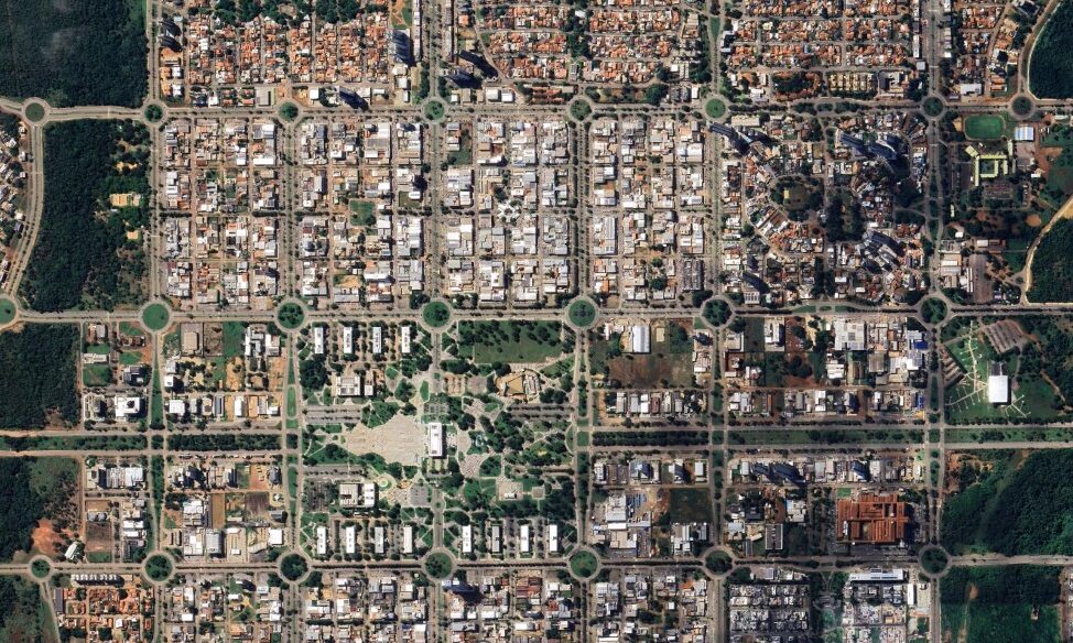 Criada em 1989 para ser a capital do Tocantins, Palmas é fruto do urbanismo planejado. Sua planta é marcada por traçados geométricos e perfeitamente alinhados, com setores e quadras organizados de forma quase matemática.