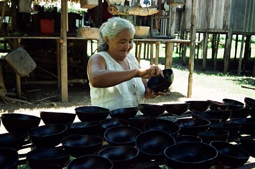 Feitas a partir do fruto seco da cuieira — planta nativa da Amazônia — as cuias são reconhecidas como um dos artesanatos mais antigos e simbólicos do território amazônico. Sua confecção envolve técnicas ancestrais preservadas por gerações, especialmente em regiões como o Baixo Amazonas, onde o ‘saber-fazer‘ da cuia é considerado patrimônio cultural e mantido, principalmente, por artesãs.