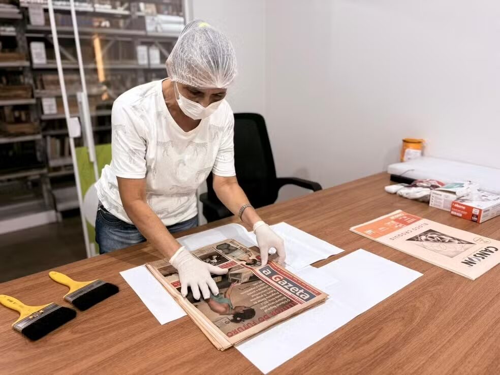 Coleção de documentos inclui edições preservadas de textos jornalísticos, manuscritos e imagens. Foto: Crystofher Andrade/Rede Amazônica AP