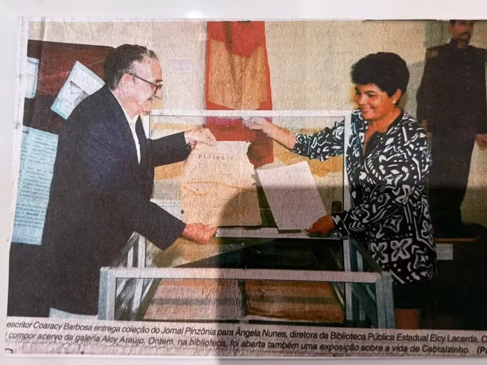 O acervo inclui ainda fotos do escritor Coaracy Barbosa entregando a coleção do jornal Pinsonia como artefato histórico para exposição no museu. O material amplia o conjunto de documentos visuais disponíveis e ajuda a contar a trajetória cultural e social da capital.