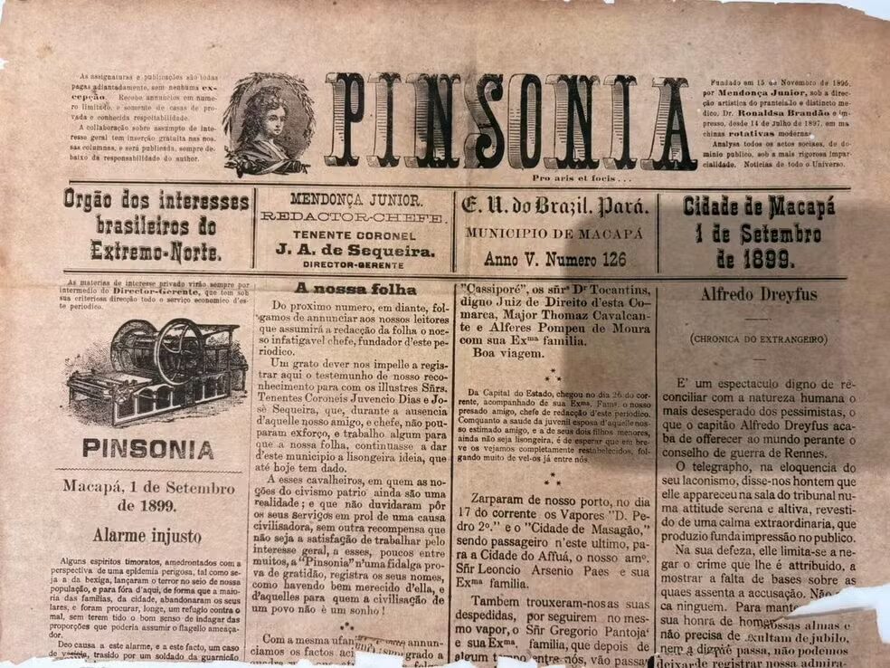 O mais antigo documento jornalístico disponível no acervo da biblioteca é a edição 126 do Pinsonia, o primeiro jornal impresso a circular na cidade de Macapá. Com uma linguagem formal e rebuscada, o periódico traz relatos da vida política, econômica e social da época.