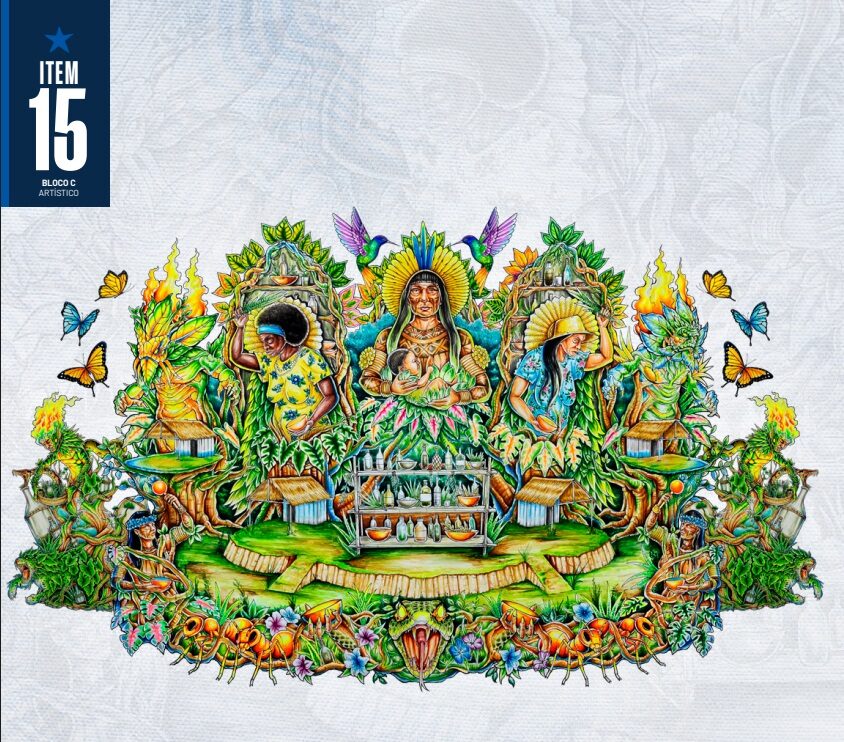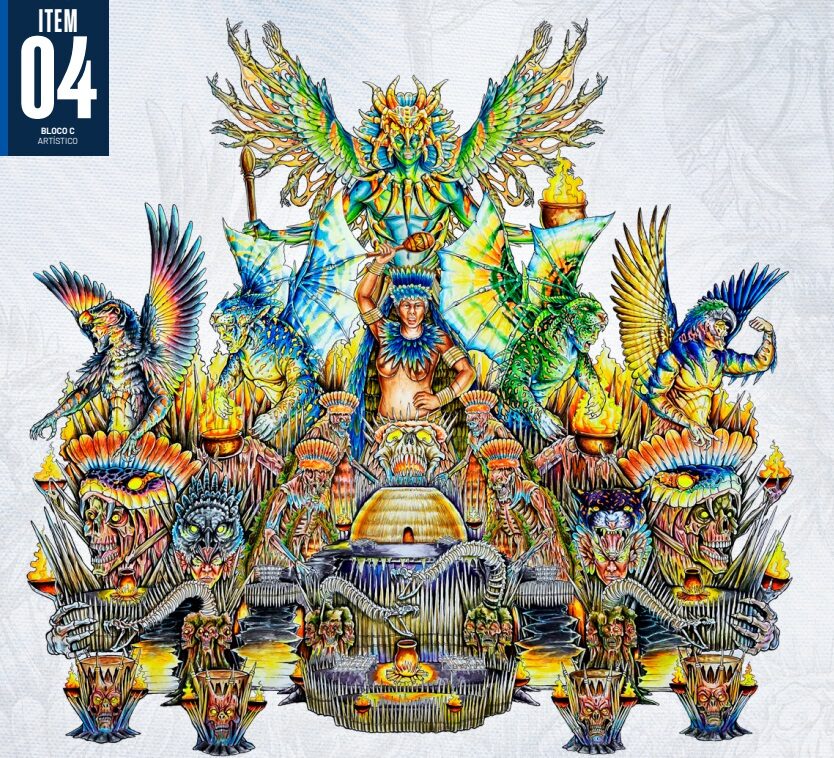 O Caprichoso encena esse ritual para valorizar os saberes indígenas e reafirmar a importância da preservação cultural e espiritual dos povos originários da Amazônia.