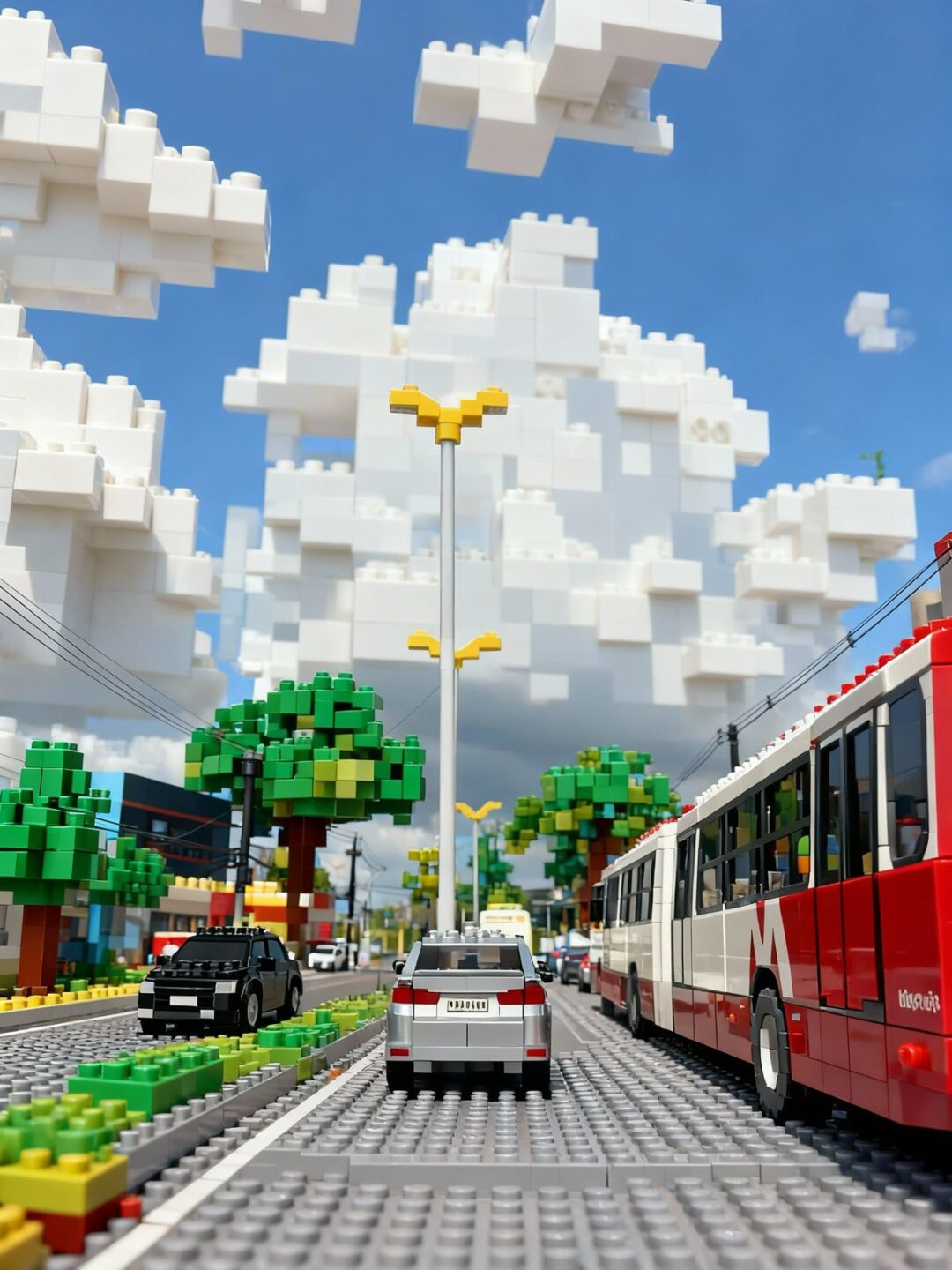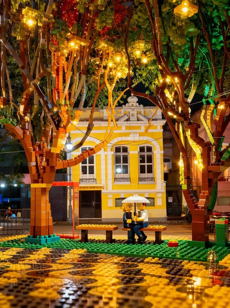 “Decidi testar um prompt [comando] em algumas IAs para transformar a cidade real das minhas fotos em Lego. No início, os produtos eram desastrosos, mas com o tempo alcancei o resultado que eu queria. E adorei. Me remeteu a um brinquedo mesmo, a uma cidade que a criança sonha para quando for grande. Brincamos com a cidade para ter amor por ela, para que ela cresça conosco”.