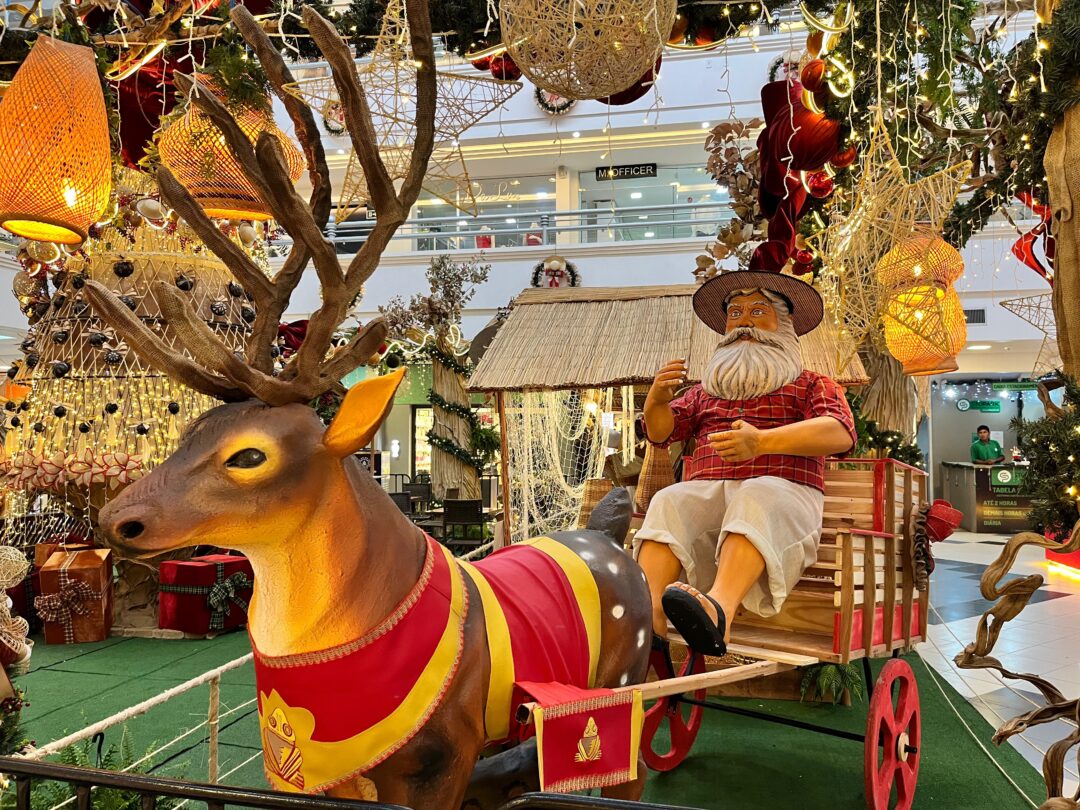 Então, é Natal! Em Santarém, durante o mês de dezembro, restaurantes, shoppings e lojas transformam seus espaços com decorações natalinas de identidade amazônica, unindo a tradição do Natal a elementos regionais.