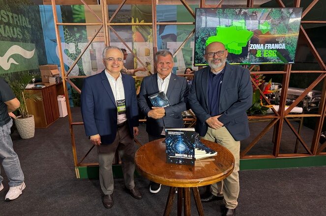 Um dos destaques da programação do primeiro dia foi o lançamento do livro “Indústria 4.0 – Fábricas Inteligentes, Negócios Exponenciais”, do pesquisador e professor Sandro Breval, publicado pela Pontes Editores. O evento ocorreu, no fim da tarde, no estande da Suframa.