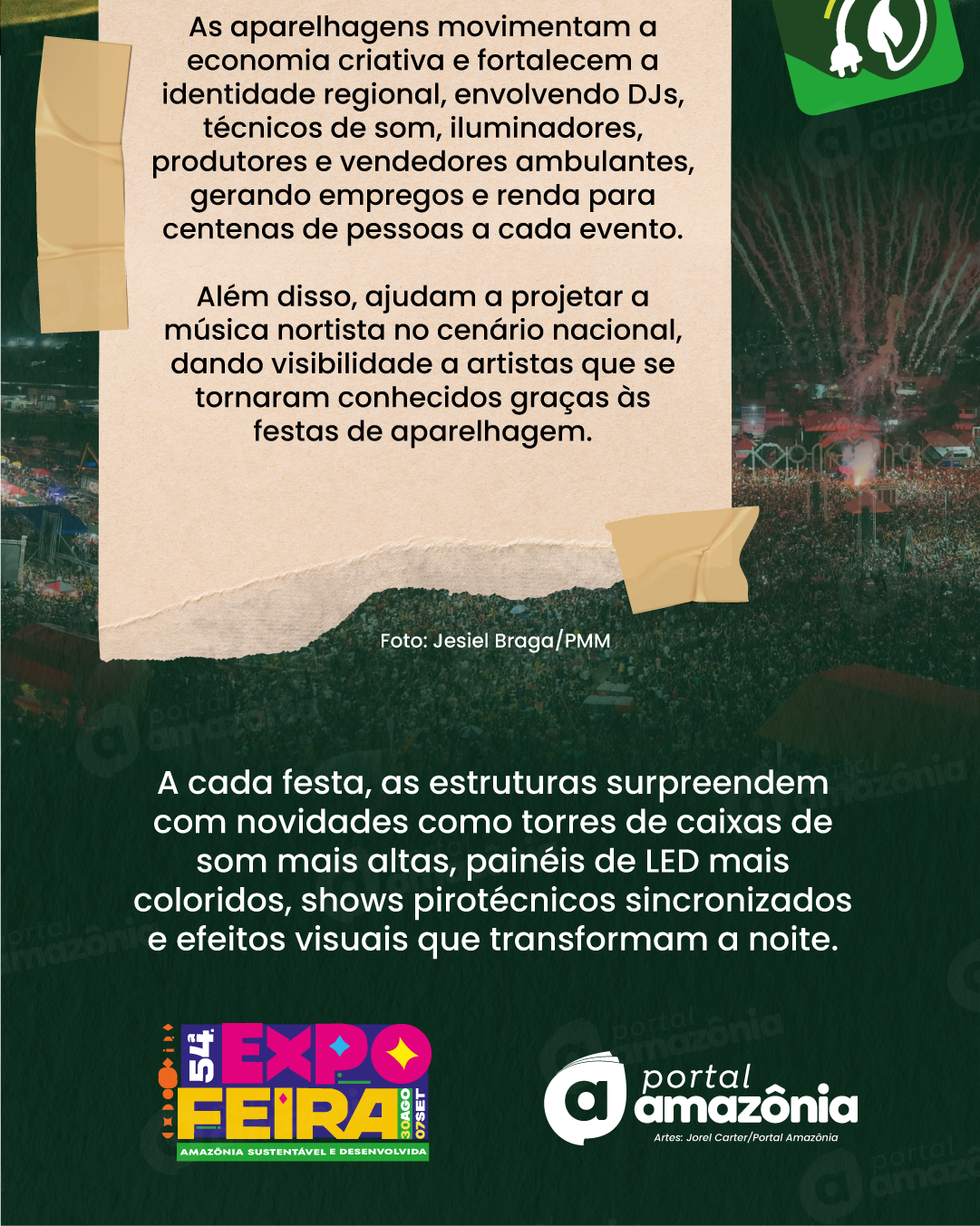 No Amapá, o Festival das Aparelhagens reúne DJs e grupos locais em apresentações que misturam tecnologia, música e dança. Na 54ª edição da Expofeira do Amapá, elas são uma atração a parte, que conquista o público: