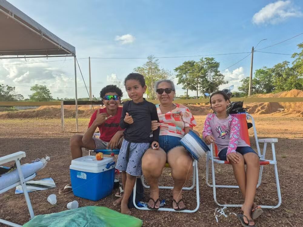 Uma avó se divertiu junto com os netos na 54ª Expofeira do Amapá durante o festival de pipas. Edna Sacramento, de 67 anos, levou os netos e o bisneto para o festival realizado nesta segunda-feira (1º), na pista de motocross. Ela contou que o passeio foi feito especialmente para atender ao pedido das crianças.