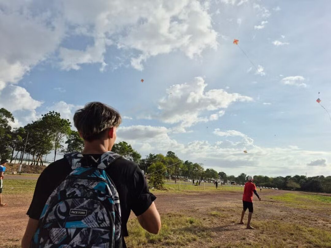 “Hoje estamos realizando o primeiro festival de pipas. Distribuímos 250 pipas e 250 carretéis com linha branca, que são do tipo sem cerol, mais seguras para quem participa e para quem circula pelo local”, explicou Venilton.
