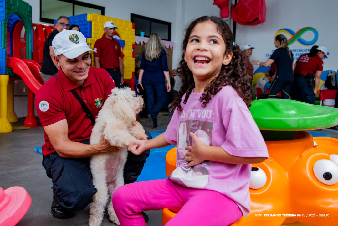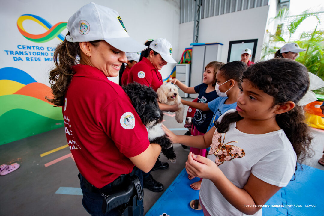 Nesta quinta-feira, 12, as crianças atendidas pelos dois centros de referência para a educação especial em Boa Vista receberam a visita do Grupo Tático Municipal (GTAM), da Guarda Civil Municipal. A ação apresentou uma turminha de quatro patas por meio do novo programa educacional de cinoterapia, também conhecida como Terapia Assistida por Cães.