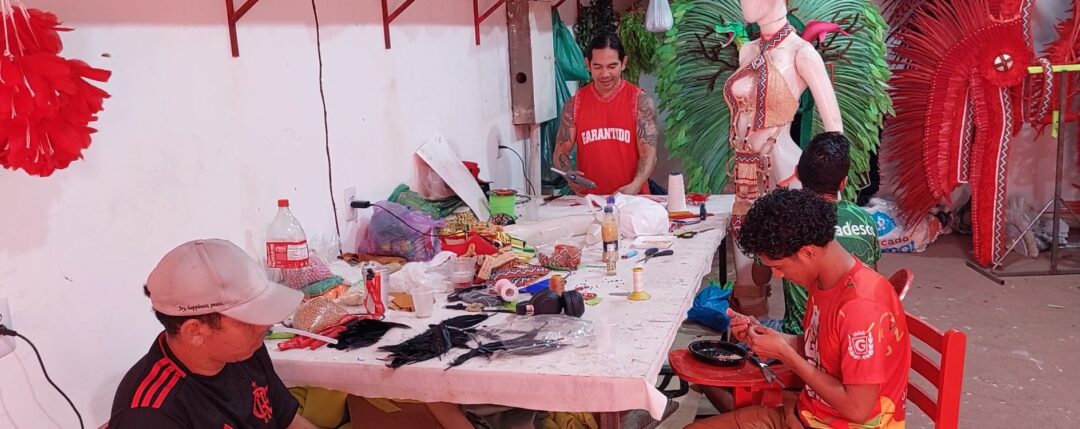 Na oficina agitada do Curral Lindolfo Monteverde, entre tecidos, penas e estruturas coloridas, uma figura se destaca pelo olhar atento e pelas mãos que transformam ideias em arte: Alessandro Oliveira, figurinista do Boi da Baixa do São José, em Parintins. Aos 32 anos, ele é responsável por criar as indumentárias de quatro importantes itens da apresentação vermelha: a Cunhã-Poranga (Isabelle Nogueira), a Rainha do Folclore (Lívia Christina), o Pajé (Adriano Paketá) e o Apresentador (Israel Paulain).