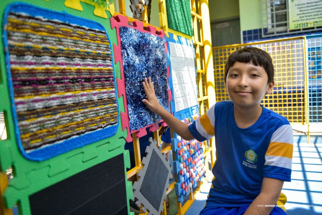 A Escola Municipal Palmira de Castro Machado inaugurou um espaço especial para estimular os cinco sentidos das crianças. Foto: Giovani Oliveira/PMBV