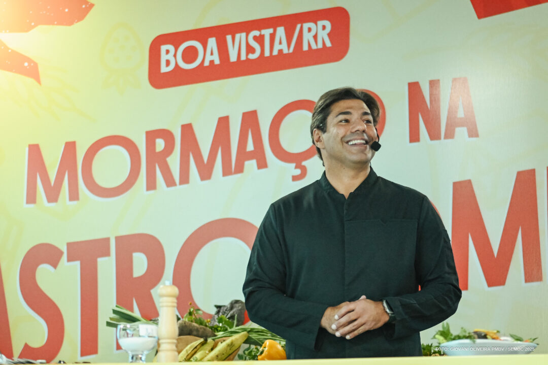 Se estamos falando de cultura, também estamos falando de gastronomia. E como parte da programação do Mormaço 2025, a prefeitura promoveu no sábado, 20, uma aula-show especial com o chef Felipe Bronze. O evento gratuito reuniu mais de 180 pessoas em uma experiência marcada por aromas e sabores, especialmente do Norte do país. À noite, o chef visitou a Feira Gastronômica do festival, se encantando ainda mais com o tempero nortista.