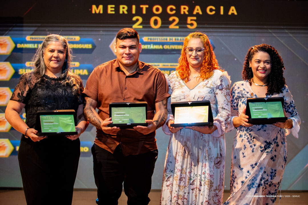 A 12ª edição do Prêmio Meritocracia reuniu, nesta segunda-feira, 8, professores da Rede Municipal de Ensino em uma noite de celebração, no Parque do Rio Branco. Com cerca de 900 inscrições, o maior número já registrado, o evento bateu recorde de participantes e reconheceu o talento e a dedicação dos educadores de Boa Vista.