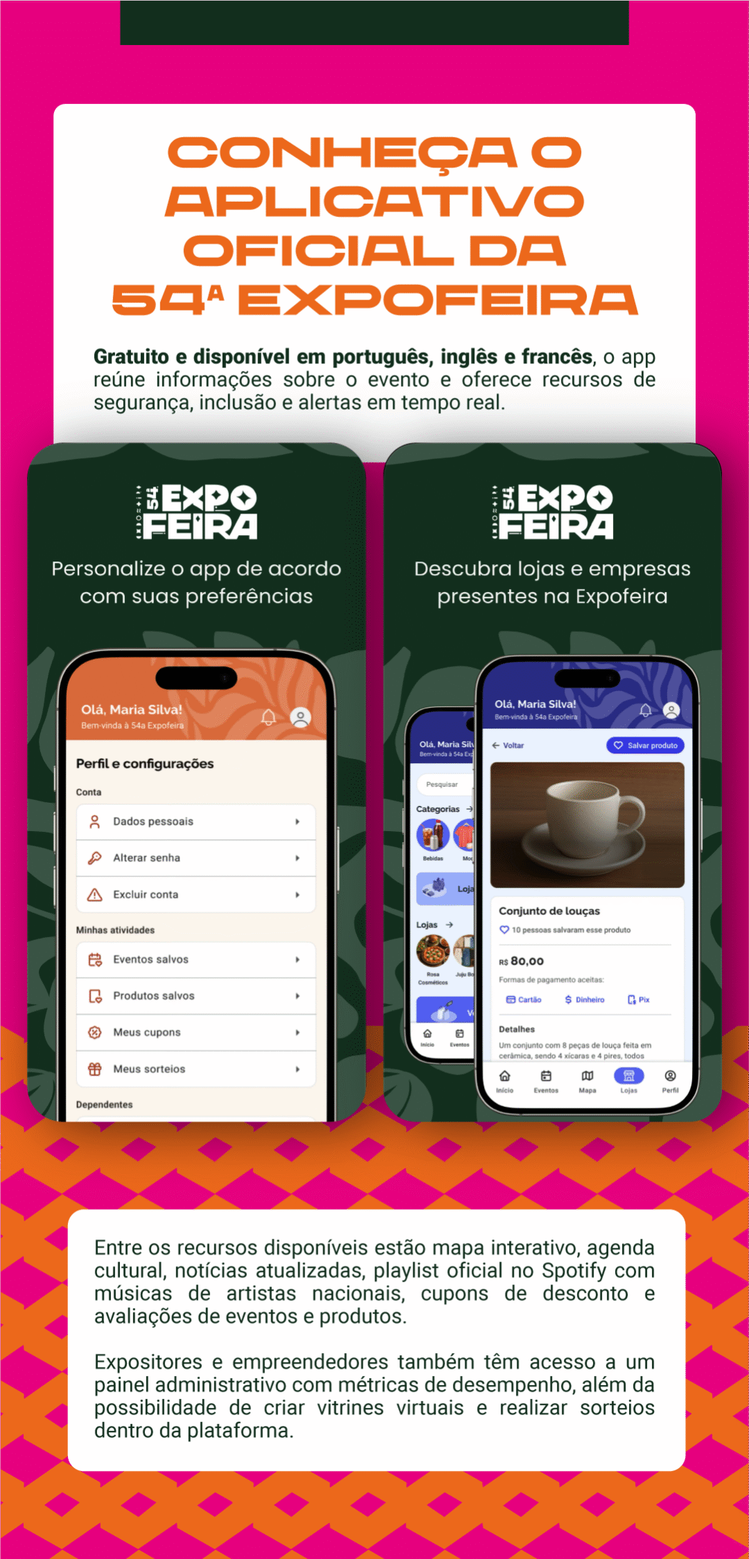 O aplicativo reúne a programação completa do evento, localização dos estandes, além de enviar notificações em tempo real sobre as principais atividades.