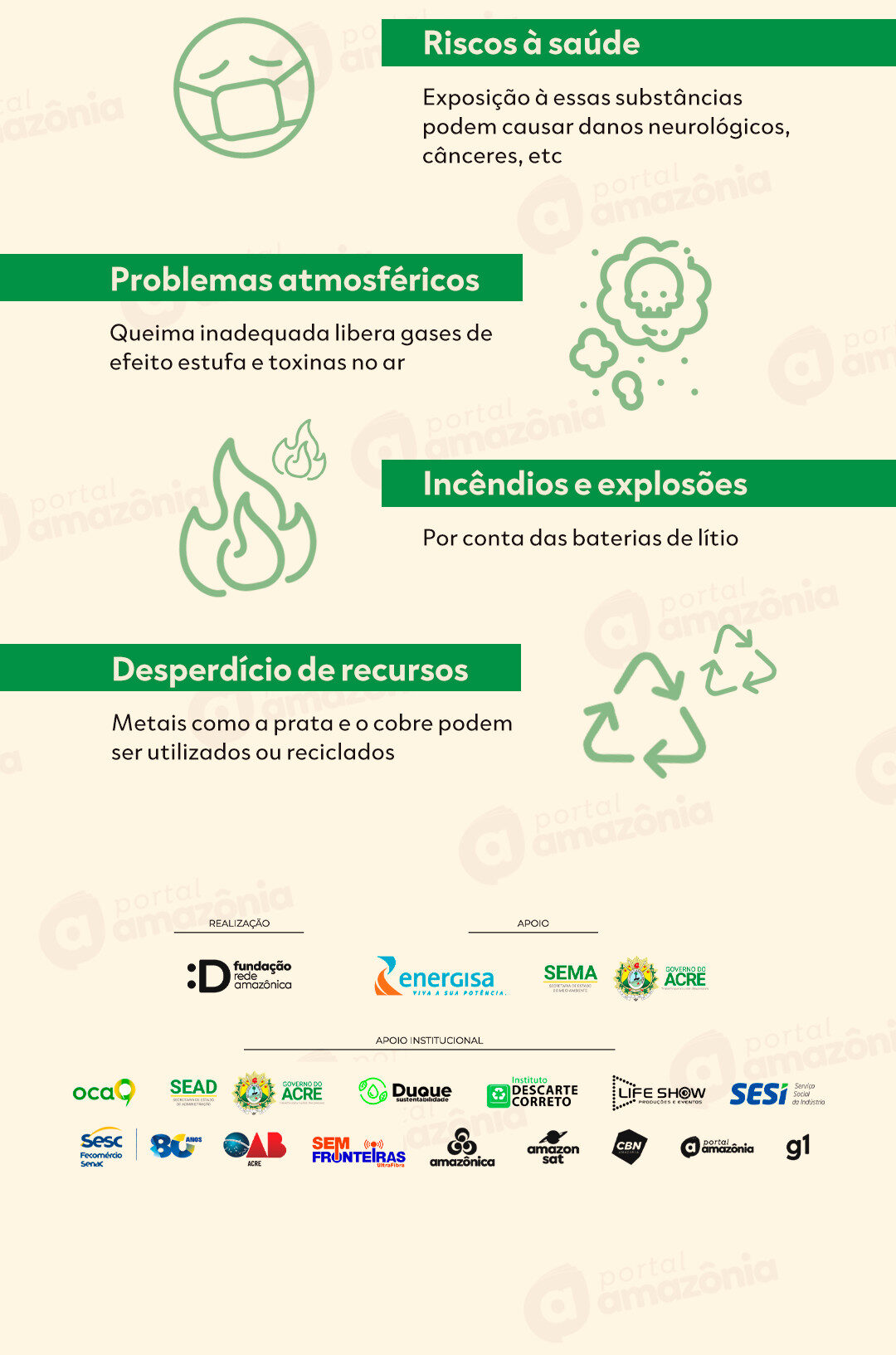O Consciência Limpa é uma realização da Fundação Rede Amazônica (FRAM), com apoio da Energisa, Secretaria de Estado do Meio Ambiente (SEMA AC), Governo do Acre e apoio institucional da Organização em Centros de Atendimento (OCA), Secretaria de Estado de Administração do Acre (SEAD AC), Life Show Produções e Eventos, Instituto Descarte Correto, Duque Sustentabilidade e Estácio Unimeta.