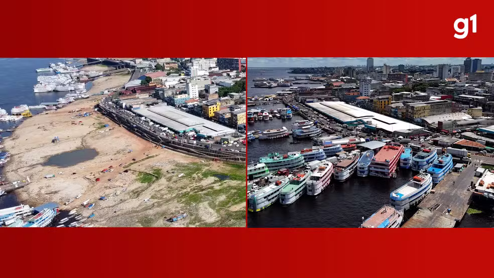 A paisagem do Porto de Manaus também mudou. Uma faixa extensa de areia, visível durante a estiagem, desapareceu em poucos meses. Em 2025, o rio voltou a subir rapidamente e ultrapassou a cota de inundação severa.