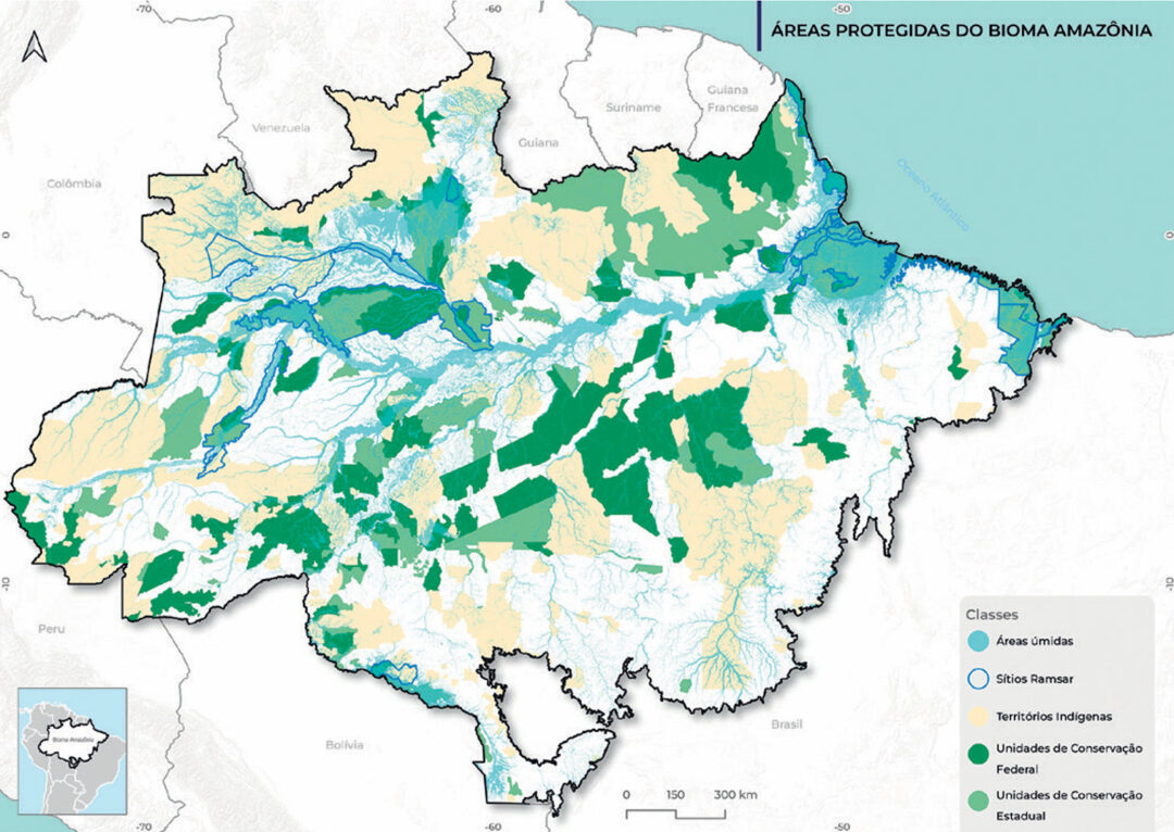 Apesar da importância global, quase metade dos ecossistemas mapeados na Amazônia ainda está fora de territórios legalmente protegidos. Conforme o estudo, apenas 53,7% das áreas úmidas do bioma encontram-se sob algum nível de proteção, sendo 21,3% em Unidades de Conservação, 15,4% em terras Indígenas, 3% em Sítios Ramsar e 14% em áreas protegidas sobrepostas.