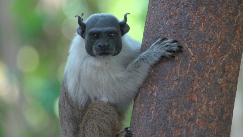 O sauim-de-coleira é um pequeno e ágil primata exclusivo da região metropolitana de Manaus. Com pelagem bicolor, o corpo branco e os membros escuros, ele é carismático, sociável e vive em grupos familiares.