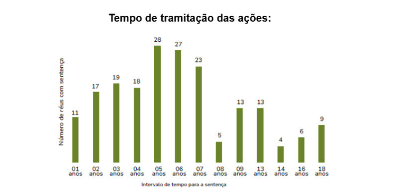 Um fator crucial para essa impunidade é a lentidão do Judiciário. O tempo médio entre o início da tramitação de um processo e a decisão final foi de seis anos. Para quase metade dos réus (48%), a sentença demorou mais de cinco anos, e em 17% dos casos, levou entre 13 e 18 anos para ser proferida. Casos de prescrição, por exemplo, levaram em média dez anos até serem declarados.