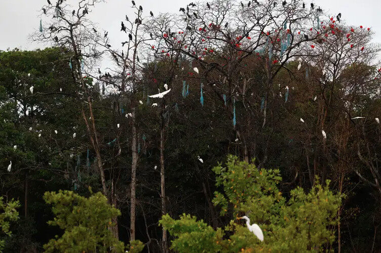 Árvores que chegam a 30 metros de altura – como um edifício de dez andares –, com raízes fixadoras que ultrapassam o tamanho de uma pessoa. Os mangues amazônicos são grandes sumidouros de carbono, superando as métricas até mesmo da floresta amazônica. Esse ecossistema é responsável por retirar da atmosfera três vezes mais gás poluente do que florestas de terra firme.
