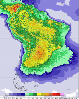 Um estudo publicado pelo Grupo ELAT (Laboratório de Eletricidade Atmosférica), do Inpe, revela que entre os anos de 2081 a 2100, a ocorrência de raios deve alcançar a casa dos 100 milhões por ano. Na Amazônia, esse número já chega a 30 milhões por ano. São 13,4 descargas elétricas por quilômetro quadrado.