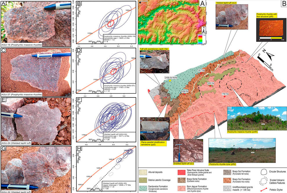Modelagens realizadas a partir de sensoriamento remoto mostram que o sistema vulcânico se estende por uma vasta área, embora grande parte permaneça soterrada por sedimentações posteriores. Esse cenário levou pesquisadores a desenvolverem métodos específicos de mapeamento estrutural, combinando geofísica, geocronologia e geoquímica para reconstituir o formato original do vulcão.