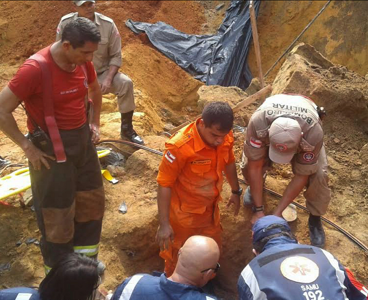 MANAUS – Um deslizamento de terra em uma obra soterrou uma pessoa e deixou outra parcialmente soterrada na tarde desta quinta-feira (8), na Avenida Perimetral, bairro Parque Dez, Zona Centro-Sul de Manaus. Uma vítima foi resgatada e outra segue soterrada. O Corpo de Bombeiros faz buscas no local.