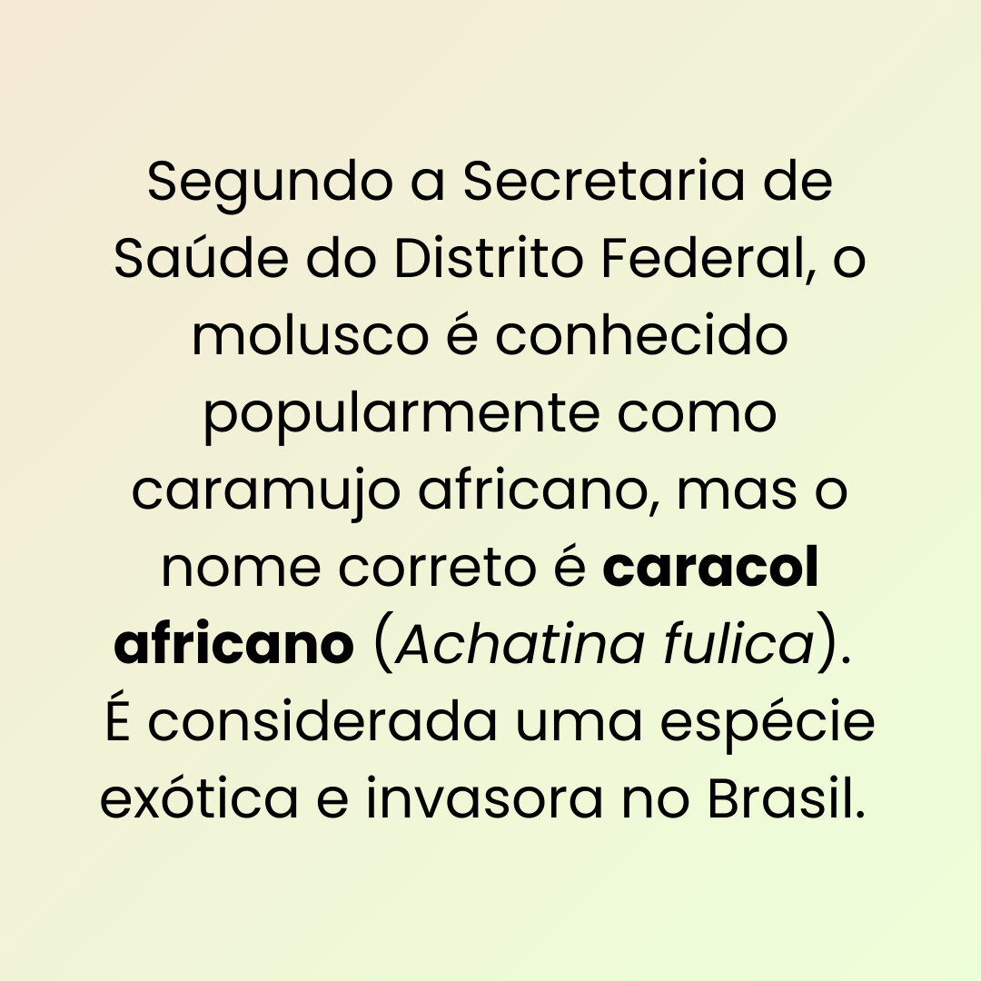 Leia também: Caracol africano: especialista explica quais riscos o animal oferece à saúde pública