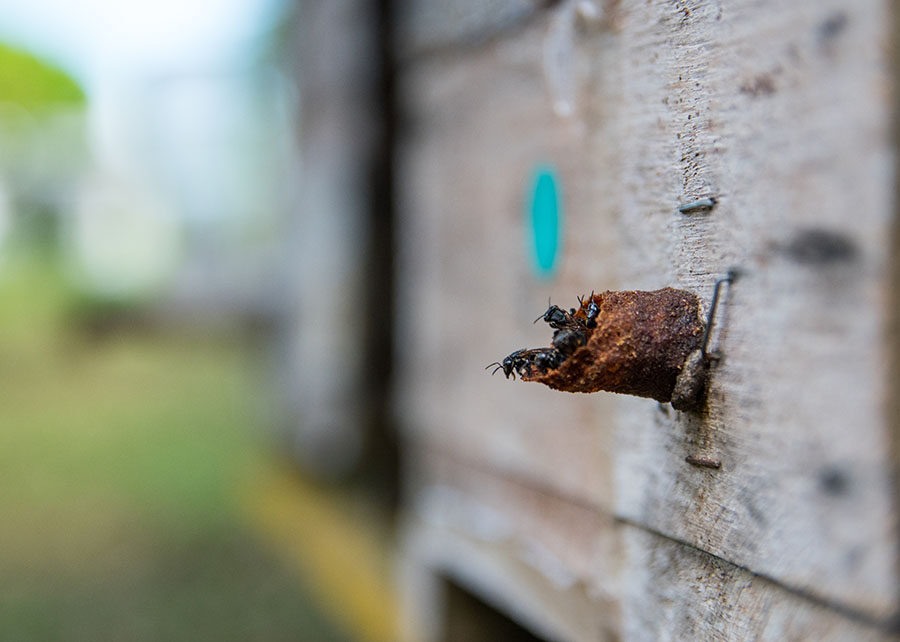 Os produtores têm buscado instalar caixas de abelhas sem ferrão em suas áreas para a polinização dirigida e aumento da produtividade. Foto: Vinícius Braga/Embrapa