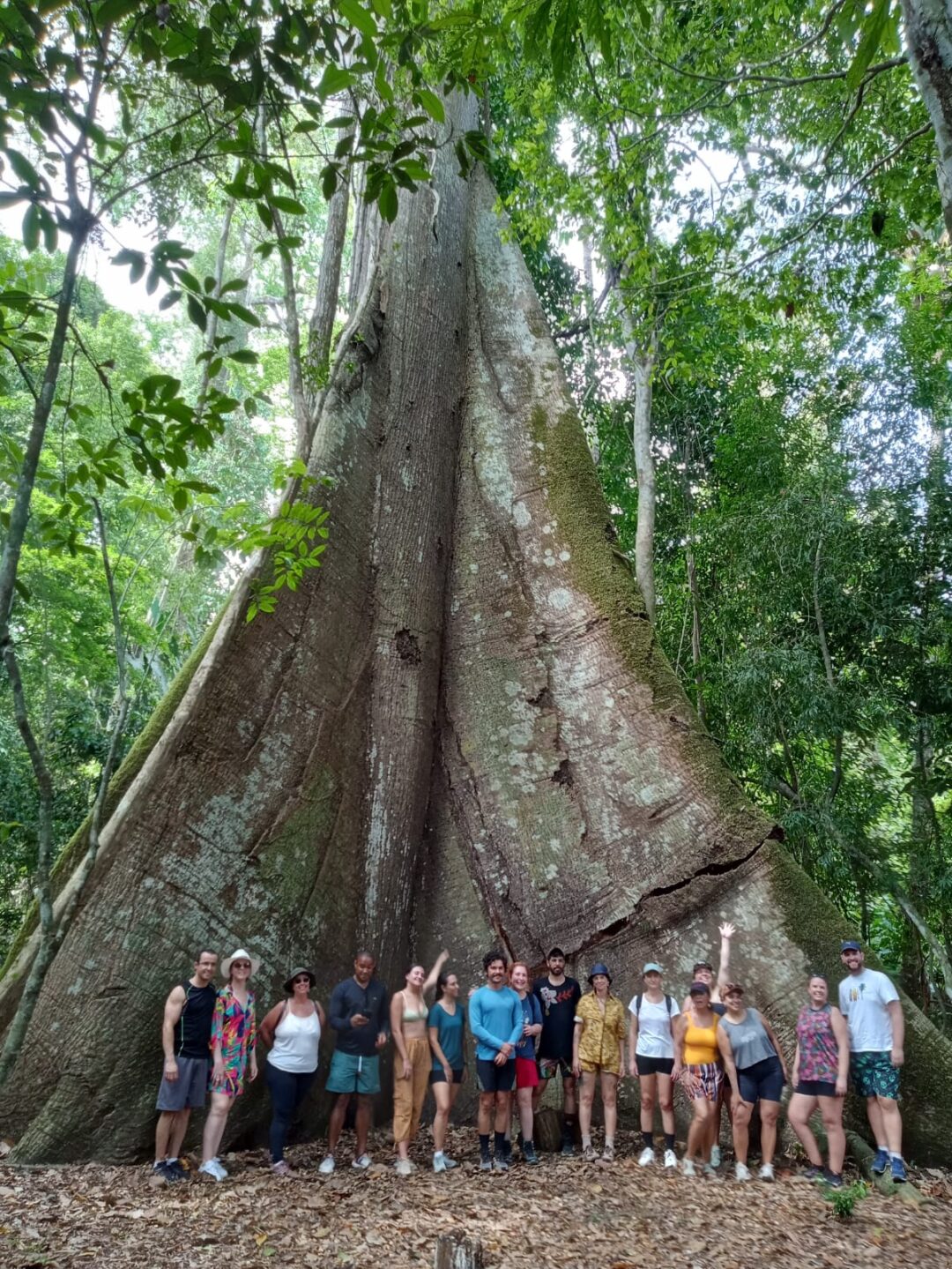 A imponência da árvore, somada ao silêncio da floresta e à conexão com a natureza, cria um ambiente quase espiritual.