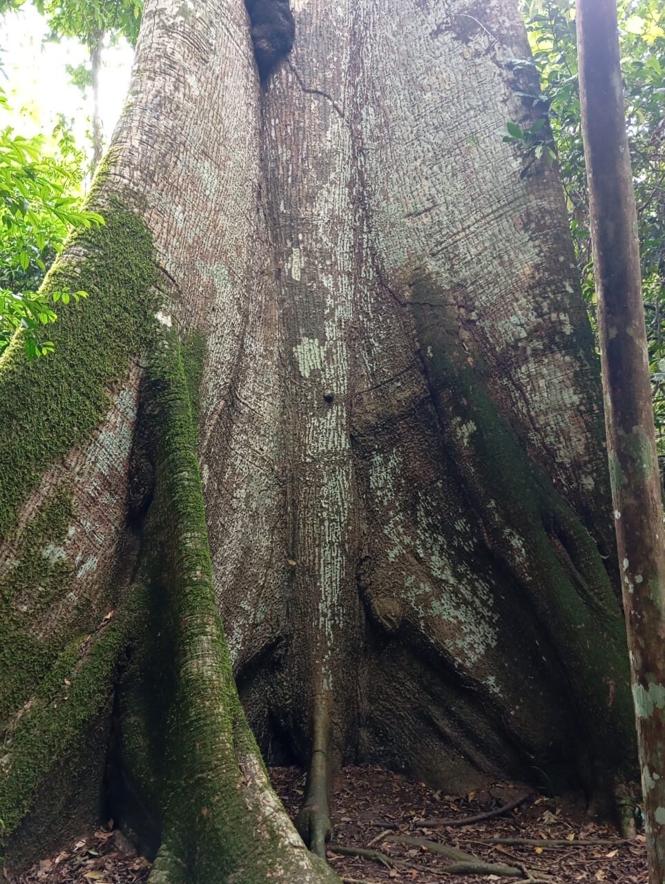 A caminhada até a vovozona não é simples, são cerca de 7 quilômetros mata adentro, em uma trilha que já prepara o visitante para o encontro com a grandiosidade da árvore. Além disso, as raízes tabulares, típicas da espécie, se espalham pelo solo como paredes naturais, o que cria um cenário surpreendente.