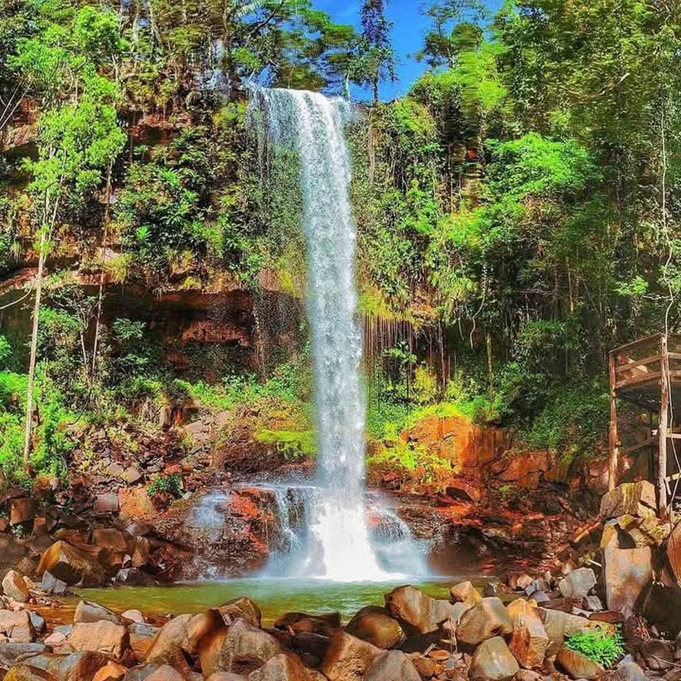 O grande destaque do local é a Cachoeira do Rio Mandi, com uma impressionante queda livre de 32 metros. Para chegar até ela, os visitantes enfrentam uma descida íngreme, de aproximadamente 120 graus, seguida de uma caminhada de 600 metros em meio à floresta.